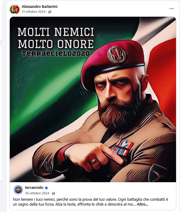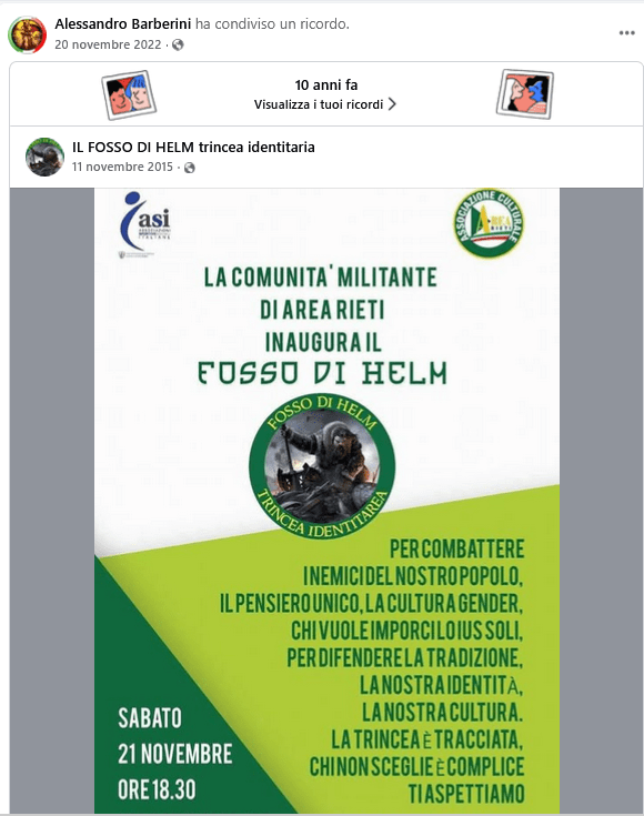 Sono fascisti da tutta la vita. Barberini fa anche parte de “Il Fosso di Helm trincea identitaria”.
